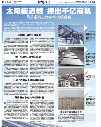 《揚子晚報》對我公司進軍太陽能熱利用工程市場進行報道