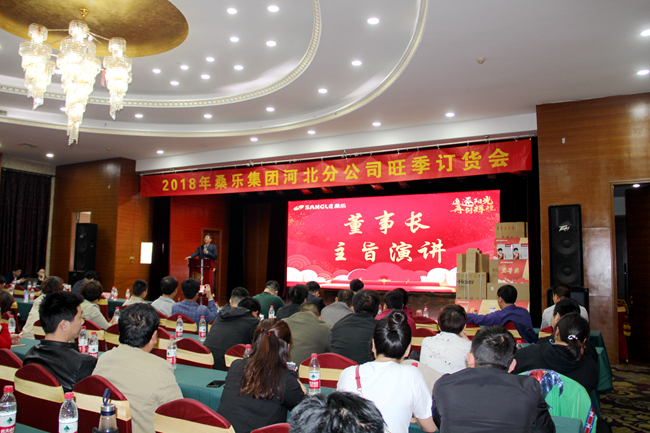 集團(tuán)王雪廣董事長蒞臨會議現(xiàn)場并發(fā)表主旨演講,首先,他代表桑樂集團(tuán)對河北經(jīng)銷商的到來表示熱烈的歡迎,并感謝他們對公司的信任和支持。董事長從中美貿(mào)易戰(zhàn)講起,在經(jīng)濟(jì)發(fā)展日新月異的今天,產(chǎn)業(yè)布局競爭激烈,每個經(jīng)銷商都要定好位,大家要學(xué)會分享成功。桑樂的優(yōu)勢在于技術(shù)優(yōu)勢,打造桑樂“環(huán)保、節(jié)能、綠色”的產(chǎn)業(yè)布局,做好終端市場。重視鄉(xiāng)鎮(zhèn)市場,不同的市場,通過不同的營銷策略,在新時代、新常態(tài)下,鄉(xiāng)鎮(zhèn)經(jīng)銷商要發(fā)揮不同的區(qū)域優(yōu)勢,攜手并肩做好桑樂。會后經(jīng)銷商們表示:他們對董事長的箴言表示高度認(rèn)可,面對2018年,將秉承集團(tuán)戰(zhàn)略,奮勇向前。