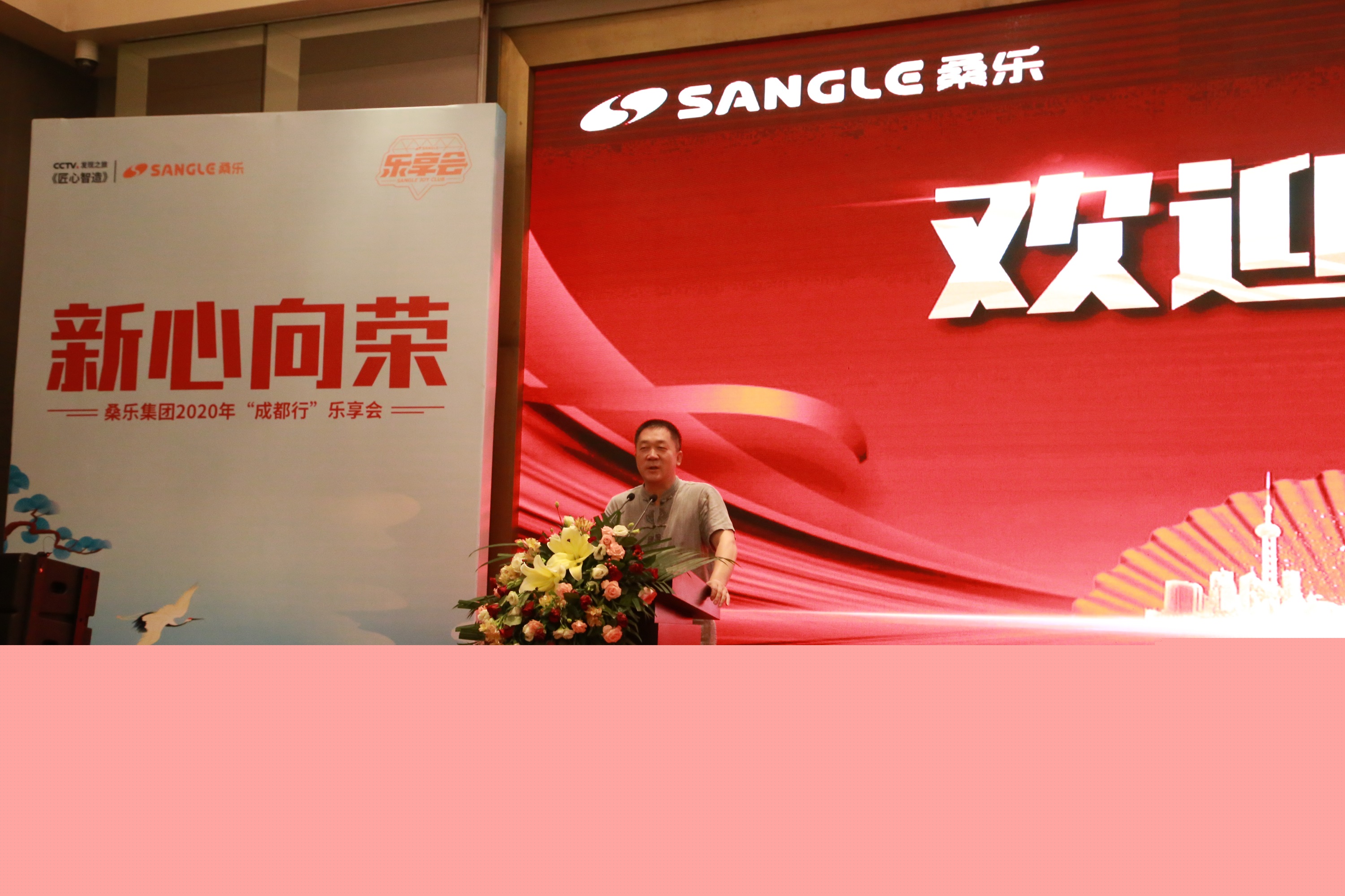 緊接著,作為會議東道主、集團(tuán)首席經(jīng)濟(jì)師郭偉郭總做了歡迎致辭,他對蒞臨本次會議的各位桑樂家人們表示最誠摯的歡迎,并邀請全體參會經(jīng)銷商于會后參觀其成都桑樂官方旗艦店。